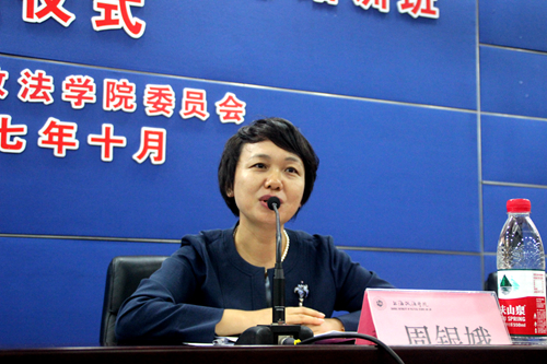 周银娥代表学校党委对团校的顺利开班表示祝贺,她指出,党的十九大即将召开,这是包括广大青少年在内的全国各族人民政治生活中的一件大事。学员们要以此为契机,第一时间关注学习党的十九大传递出的新思想、新理念、新战略,在班团工作中切实引领广大青年将自己的青春梦,融入到学校发展、国家富强的中国梦之中。她要求学员要坚定信念、彰显担当,在青年群体中传递正能量、弘扬主旋律,服务学生成长发展,做立场坚定、勇于担当的班团骨干;要博闻通达、善于学习,像海绵一样汲取知识,掌握新形势下团学工作知识和能力,立足学生成长成才需求来开展工作,做博学多才、勤学实干的班团骨干;要明确目标,不负初心,按照群团改革精神,增强“政治性、先进性、群众性”,对自己高标准、严要求,做严于利己、德法兼修的班团骨干。
