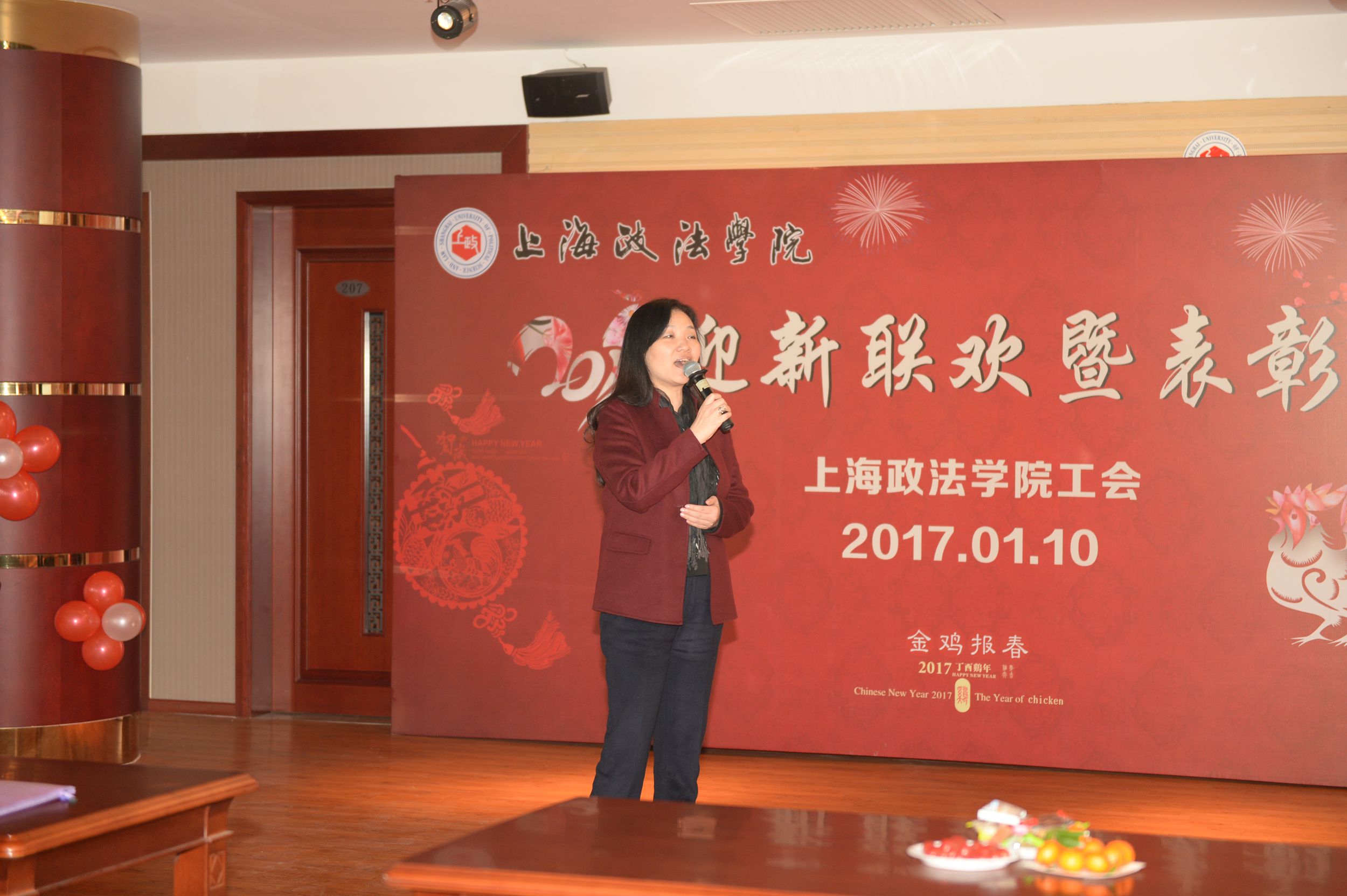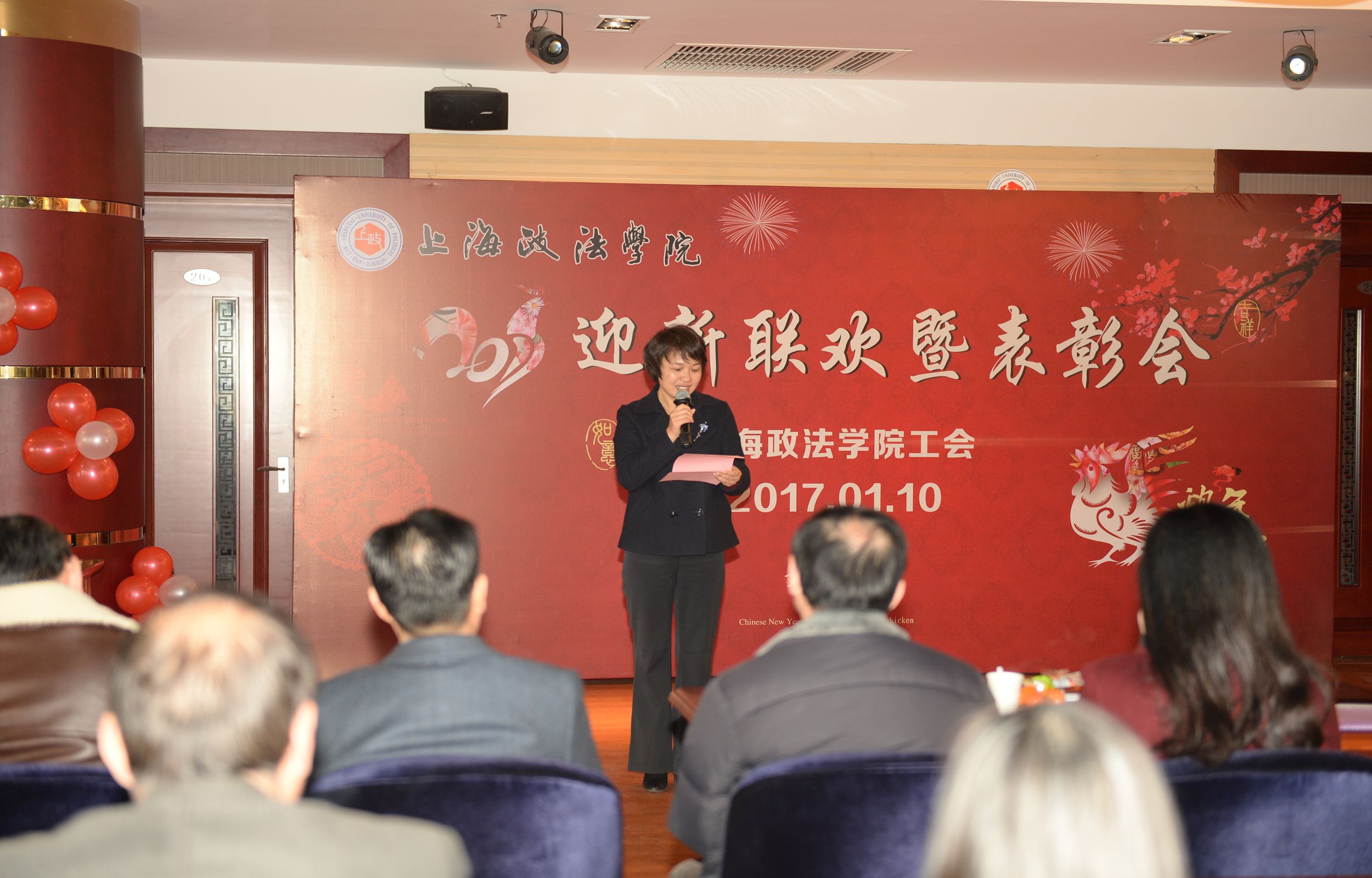 2017年1月10日中午,365英国上市公司工会2017年迎新联欢暨表彰会在教工活动中心210多功能厅隆重举行。校长刘晓红,校党委副书记、纪委书记吴强,校党委副书记、副校长、工会主席周银娥,副校长关保英,工会常务副主席周毅,以及党总支书记、劳模、部分校工会委员、二级分工会主席、委员等出席了此次工会联欢暨表彰会。