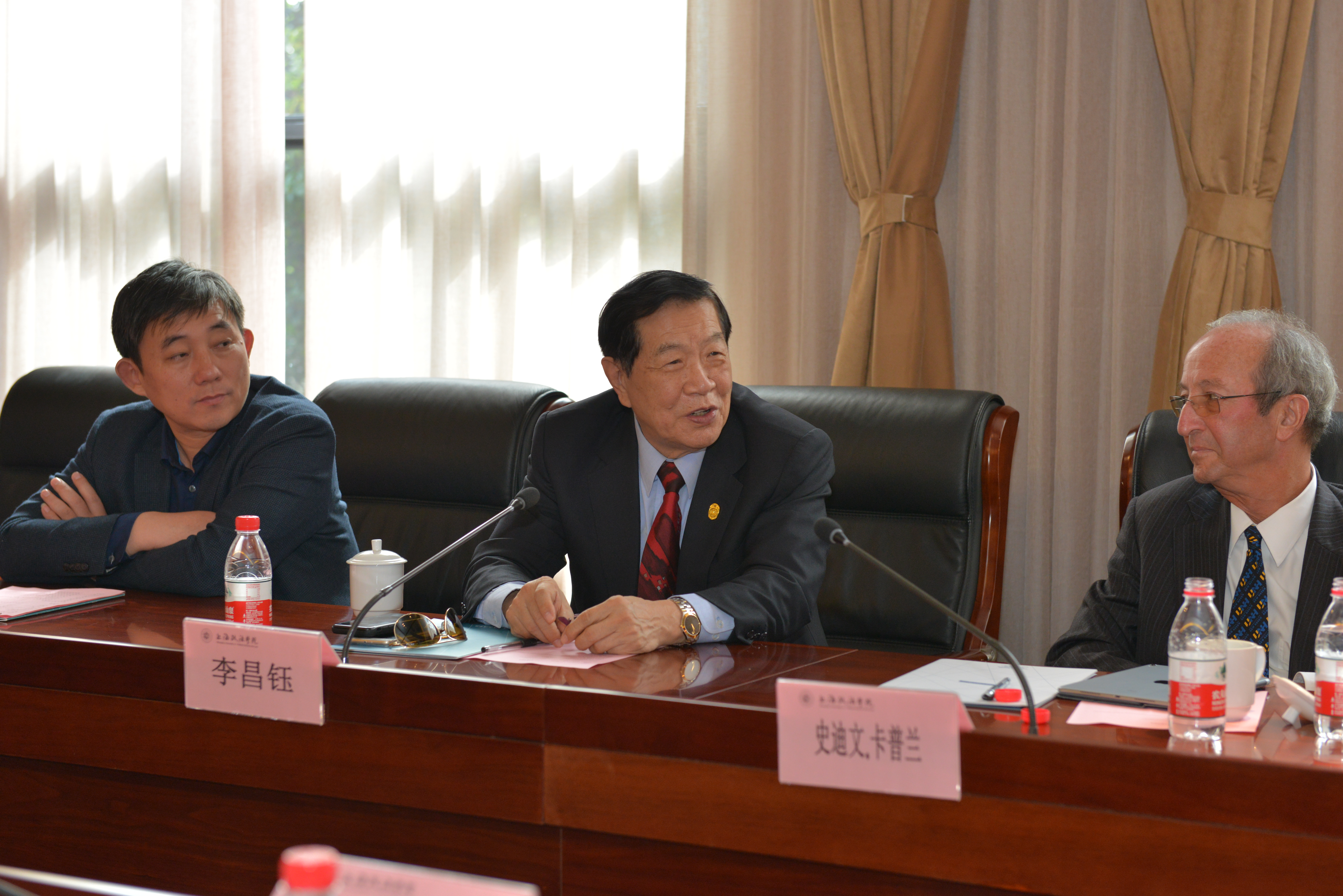 10月31日上午,美国纽黑文大学校长Steven H. Kaplan、终身教授李昌钰、鉴识科学研究及教育公司首席科学官Micheal Fredric Rieders等一行6人以及江苏省如皋市委常委刘向阳访问我校。我校校长刘晓红、副校长潘牧天在综合研究中心与来宾进行亲切会谈。学校办公室主任高志刚、国际交流处处长王蔚、国际交流学院院长欧阳美和、法律学院院长侯怀霞、刑事司法学院-警务学院党总支书记胡冠时、经济管理学院院长王明华、文学与传媒学院-上海纪录片学院教授戴元光、警务学院常务副院长蔡一军、经济法学院党总支副书记叶卉、国际交流处副处长张正怡、365英国上市公司法律顾问沈伟民、国际交流处国际项目主管王瑶参加。