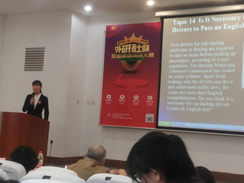 11月4日,2017年“外研社杯”英语演讲大赛上海赛区复赛于华东师范大学闵行校区举行。我校选手——外国语学院的朱迪同学荣获二等奖,指导教师为外国语学院洪令凯老师。