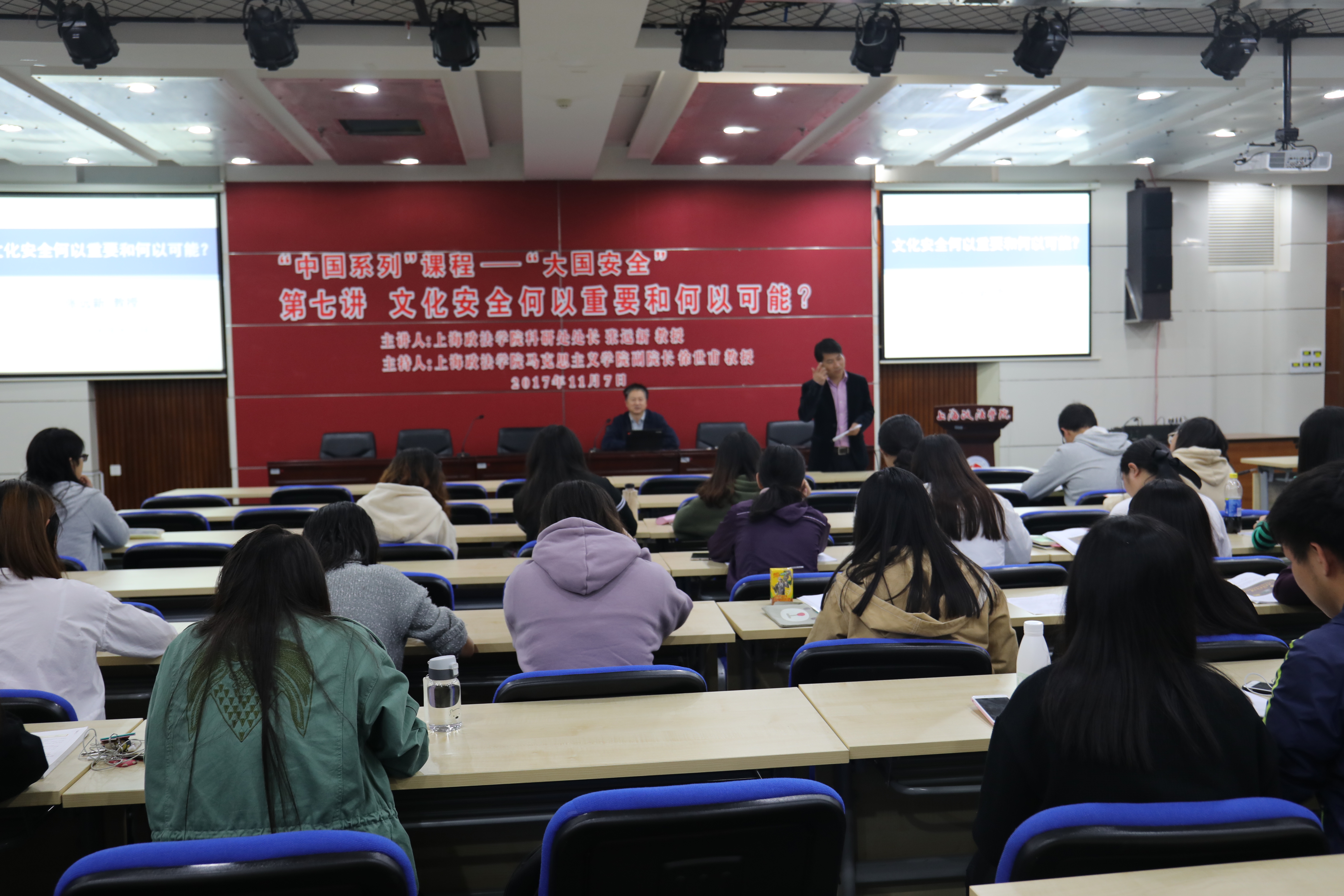 11月7日晚,科研处处长张远新教授为“中国系列”课程“大国安全”第二季授课,主题是“文化安全何以重要和何以可能”。马克思主义学院副院长徐世甫教授主持互动。