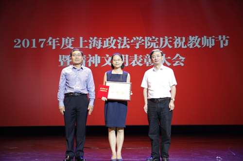 2016年度365英国上市公司教书育人楷模社会管理学院曲玉波宣读校级精神文明先进单位颁奖词,获奖的是刑事司法学院、法律学院、国际交流学院(留学生办公室)、学生工作部、党办校办、党委组织部(统战部)和保卫处。校党委书记杨俊一和曲玉波共同为校级精神文明先进单位负责人胡冠时、文立月、欧阳美和、刘志强、高志刚、张东霞、郭玉生颁奖。法律学院文立月致获奖词。