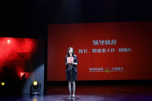 校长、精建委主任刘晓红致辞。她指出,作为一名光荣的人民教师,用真情传播智慧的火种,用勤劳和汗水培育优秀人才,我们无怨无悔。33年前,上政人在野马浜这片田野上白手起家,竖起第一幢教学大楼、第一幢学生宿舍、第一幢图书馆,在庆祝第一届教师节的同时迎来了第一批学员。33年来,我们秉持“立足政法、服务上海、面向全国”的办学定位,坚持特色发展、卓越发展和创新发展,推进学校实现了一个又一个新的突破。这一系列成果的取得来自不易,凝聚着全校教职员工和广大师生同心协力、砥砺前行三十余载的劳动和心血。