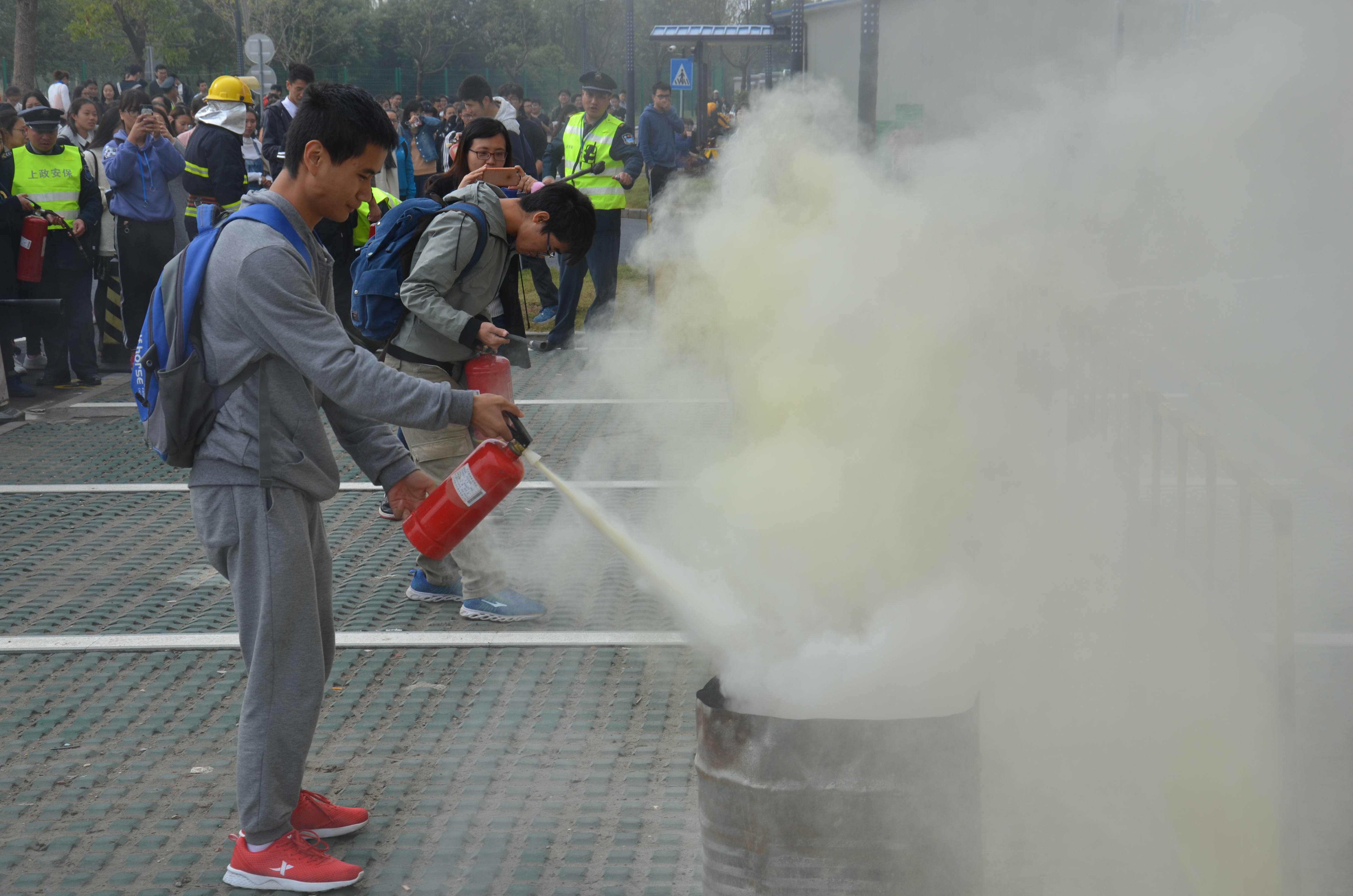 我校共有11层高层宿舍楼2幢、360余间学生宿舍,近1500名学生居住在这里,楼层高、人员密度大,消防安全工作开展遇到新的挑战。演习分为模拟火场、报警救火、有序疏散、火场逃生、高层救援五个环节。松江区佘山消防支队官兵开展了高层火场营救演示,保卫处微型消防站消防队员利用逃生缓降器对被火困在3楼的学生实施营救。随后,进行了消防灭火演示和实战演练。