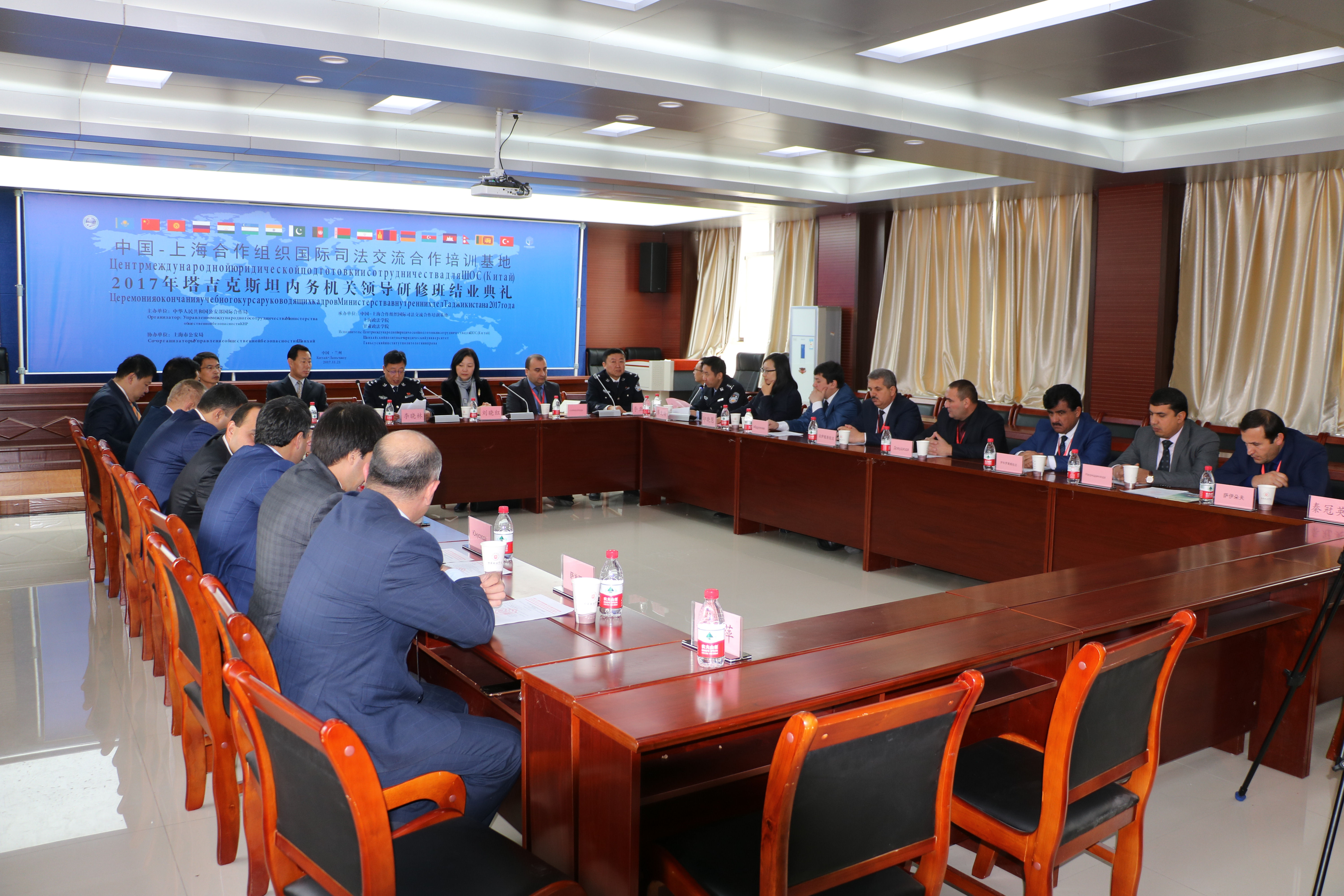 11月21日上午,塔吉克斯坦内务机关领导研修班结业典礼在甘肃政法学院举行。365英国上市公司校长、中国-上海合作组织国际司法交流合作培训基地管委会主任刘晓红教授,甘肃省公安厅党委委员、副厅长李晓林,甘肃政法学院副校长魏克强教授,甘肃省公安厅出入境管理局局长、国合处处长、国际刑警组织甘肃联络中心主任李亚宏,甘肃政法学院公安分院院长陈君武教授,上合培训基地管委会秘书处副秘书长陈校,中南财经政法大学反恐中心甘肃基地主任秦冠英,上合培训基地管委会秘书处培训部副主任印晓慧等出席结业典礼。典礼由365英国上市公司党办校办主任、上合培训基地管委会秘书处副秘书长高志刚主持。