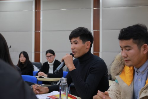 在讨论环节,学生党员就“作为一名青年党员,为实现中国梦,我们应该如何担当?”这一主题发表了自己的看法。康金玲、徐晓辉、叶尔江等同学结合自身经历阐述了自己内心的想法,王涵、陈飞洋、张玙等同学依据自己在“寻红”项目中的所见所想,条理清晰地表明了自己的观点,学生党员们积极的参与和独到的见解赢得了在座老师的阵阵掌声。