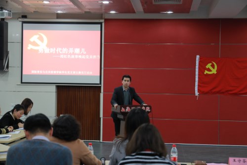 主题党日观摩交流活动由学生党支部书记李高楠同学主持,活动在庄严肃穆的国歌声中拉开帷幕。诗歌朗诵《共产党员》,让在场的每一个人都感受到了共产党员的力量;原地下党员重孙女讲述太爷爷的故事《他,或许没有满身功勋,却依旧光荣耀眼》,重现了一个平凡的老共产党员的责任和担当;“寻红”项目组党员逐一分享寻红之路上见闻:不允许任何人中伤中国共产党的上海阿婆、雷锋生前亲密战友乔安山、上海奉贤死雄烈士纪念碑……每一次讲述都仿佛再现当时的场景,引导在场的人铭记历史、继承先辈遗志,激发爱国情怀;《建国大业》主题曲《追寻》的动听旋律,让在座的每一位真切感受到,追寻,追的是赤子情,寻的是中国梦。