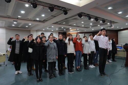 最后,学生党支部全体党员在专属党员手册上手写入党誓词,并且面对党旗,重温入党誓词,铿锵有力的宣誓声响彻会场,仿佛回到了那个风雨如磐的年代。