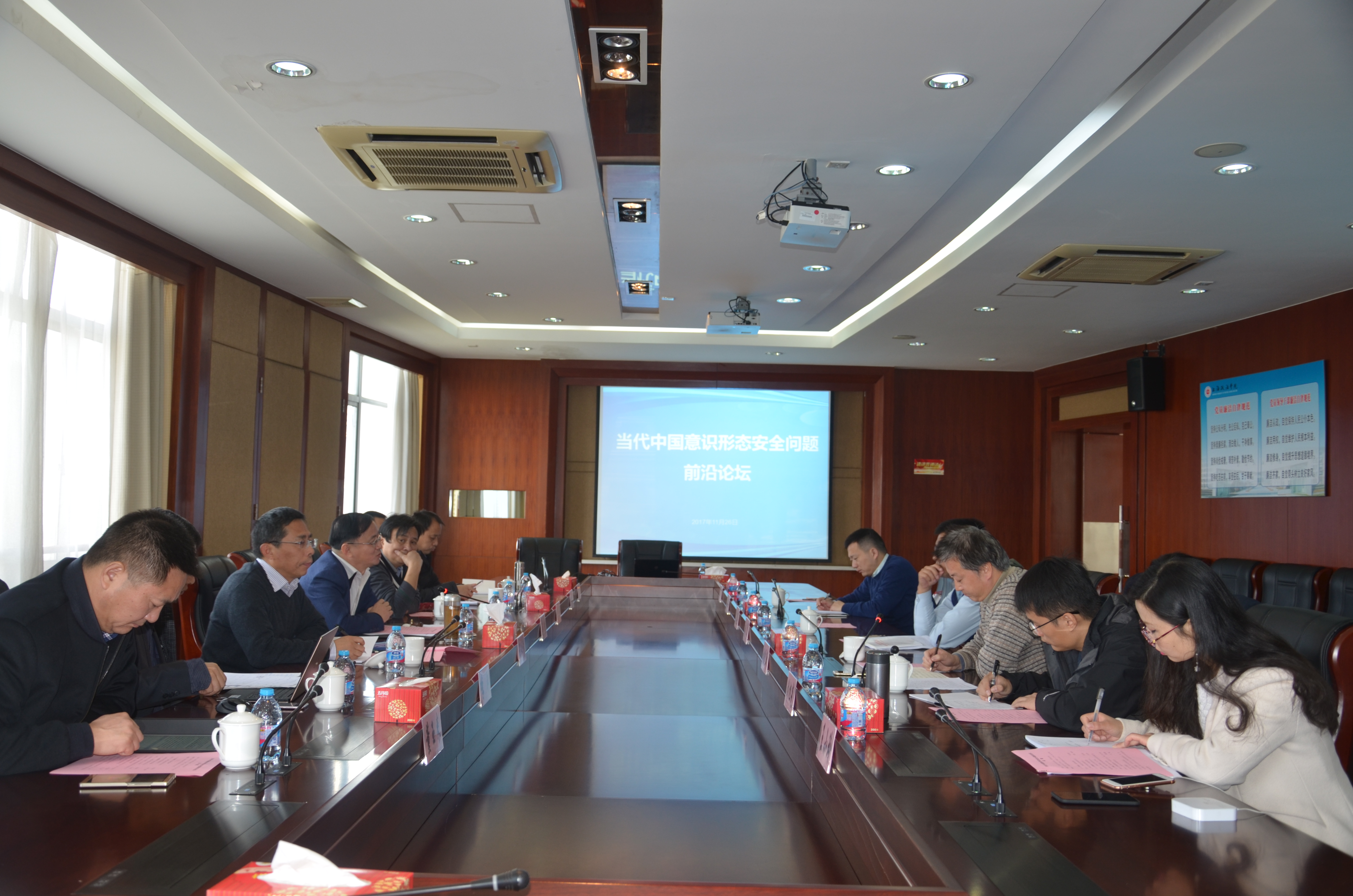 11月26日上午,我校科研处和宣传部联合主办的“当代中国意识形态安全问题前沿论坛”在求实楼413会议室成功举行。来自复旦大学、上海社会科学院、南京师范大学、华东政法大学、上海对外经贸大学、上海商学院、上海海洋大学等多所高校、科研院所的专家学者和我校师生共20余人齐聚我校,共同探讨“当代中国意识形态安全问题”这一热点问题。我校党委副书记吴强致开幕辞,科研处处长张远新主持开幕式。
