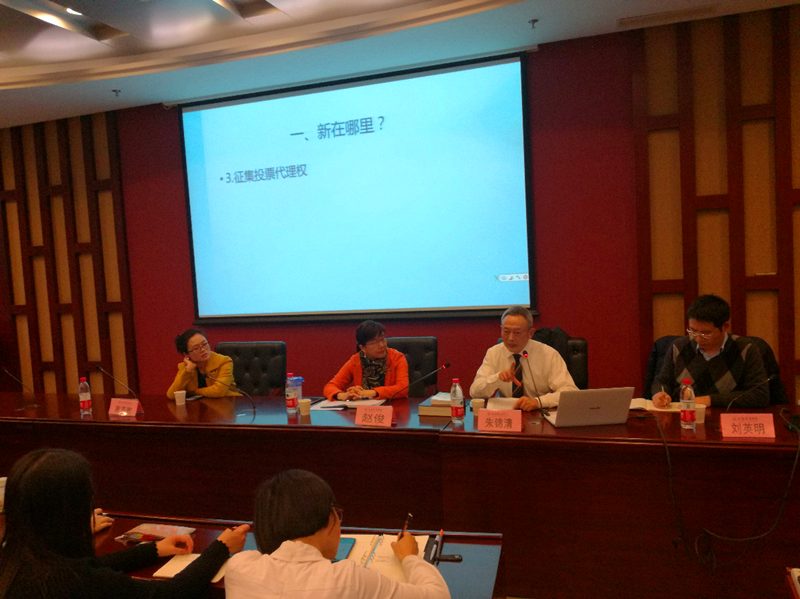 11月28日下午,应我校研究生处和法律学院邀请,著名公司法证券法研究专家朱锦清先生在校综合研究中心107会议室为我校学生作了一场精彩的学术讲座。本次讲座的题目是“开一盏明灯,拓一条新路——朱锦清《公司法学》的创新及其贡献”。本次讲座由研究生处处长赵俊副教授主持,法律学院刘英明副教授点评。