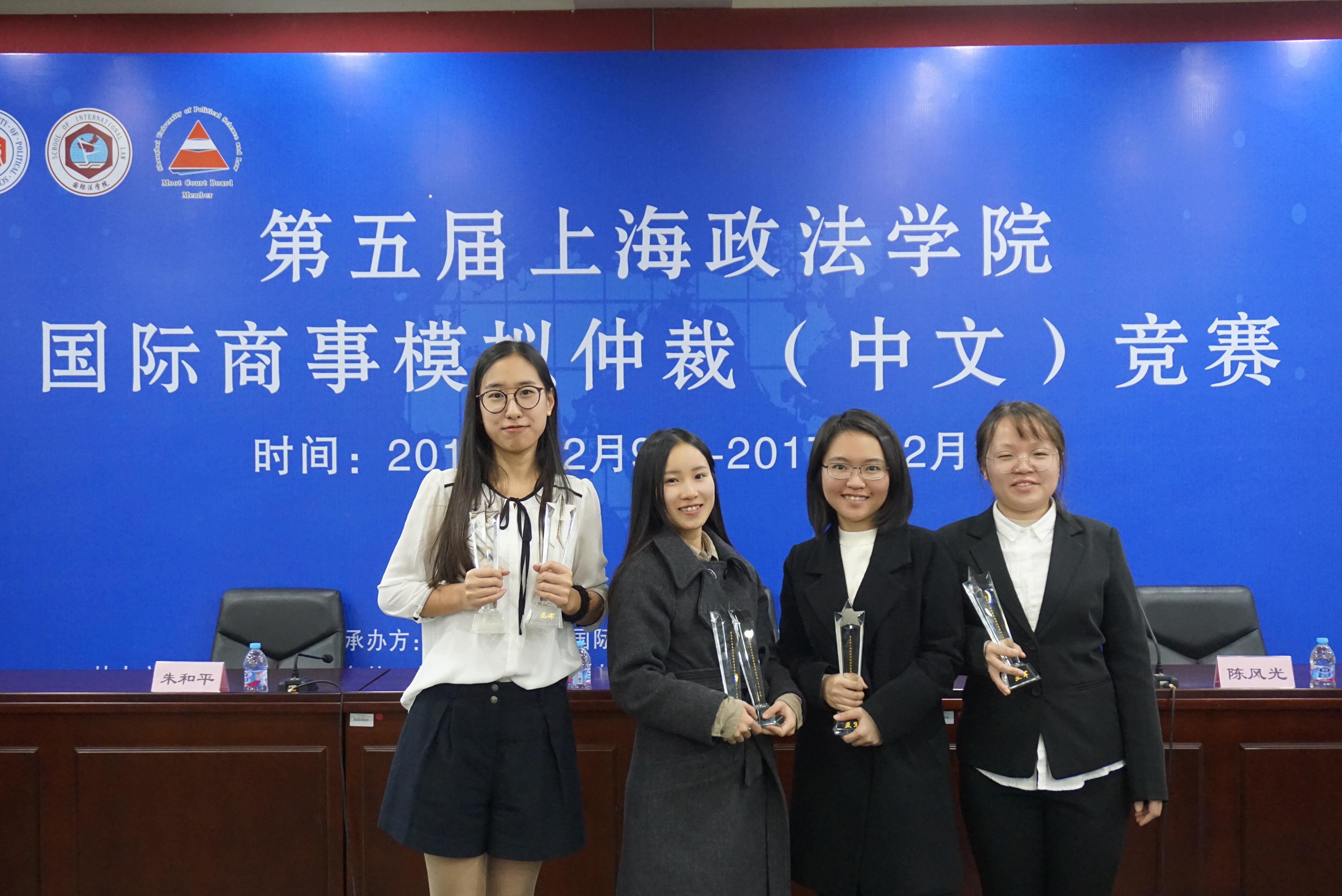 本次竞赛竞争激烈,共有34组队伍进行报名,通过11月25日的笔试,角逐出16个最佳队伍参加了正式循环赛。12月9日,经过一天的竞赛,选拔出前四强队伍进入半决赛。12月9日晚举行了半决赛,由上海市光大律师事务所合伙人吴海、上海跨界市场营销有限公司总裁康骐、上海神开石油化工装备股份有限公司法务总监兼证券事务代表王振飞律师、欧普照明股份有限公司法律顾问闫飞律师、国际交流处副处长张正怡副教授、国际法学院蔡鑫博士担任仲裁员,产生最终进入决赛的两支队伍。