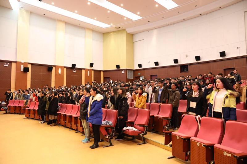 12月19日下午,外国语学院在天马讲堂召开了2017年学风建设总结会暨秋季学期考前动员大会。外国语学院院长张本梓、党总支书记姚善英、副院长夏甘霖、各教研室主任、辅导员及全体学生参加了此次大会。