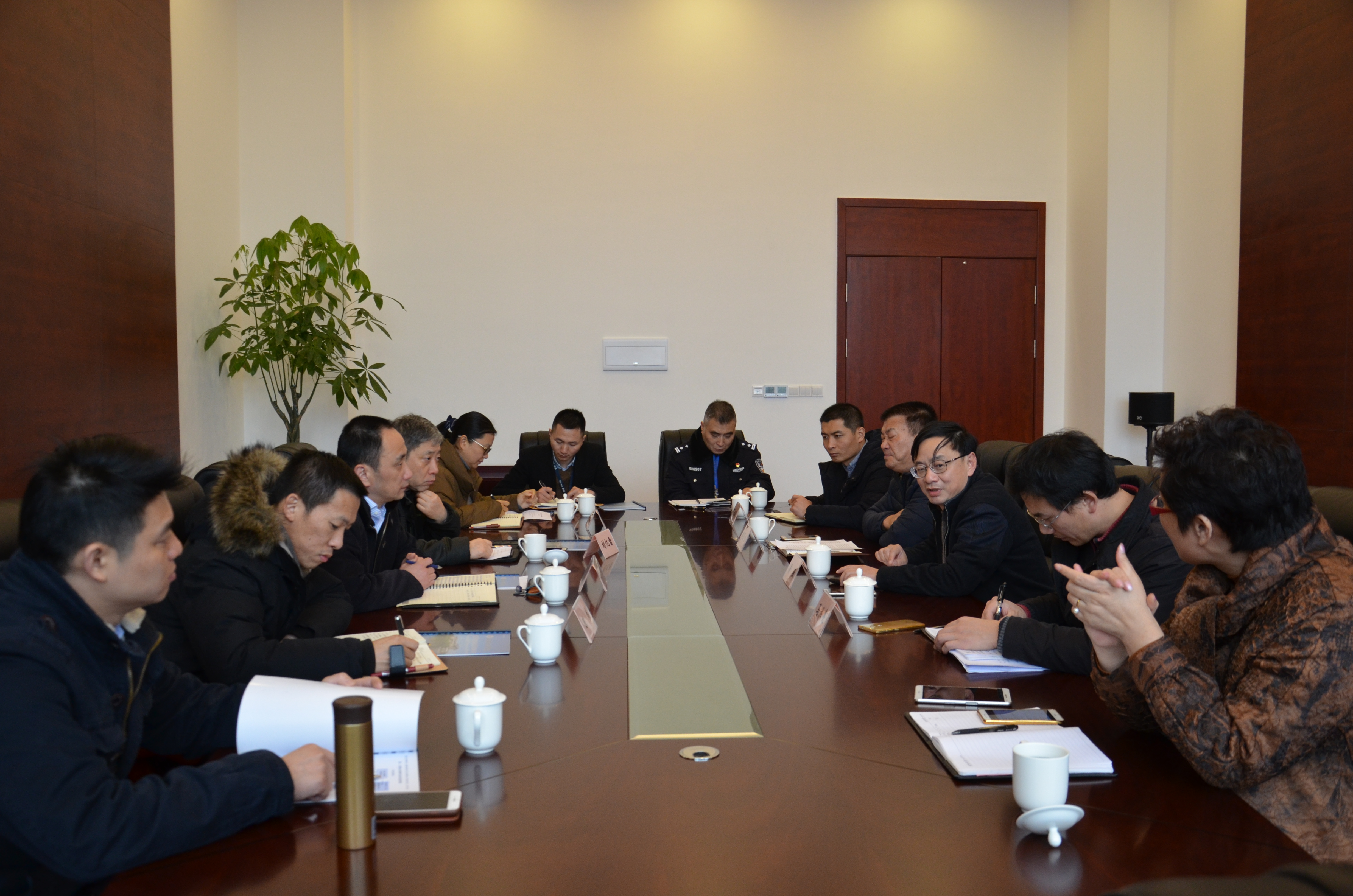 吴强代表学校对何明一行的到来表示热烈欢迎,对市公安局文保分局长期以来的支持表示感谢。他简要介绍了学校发展及上合培训基地开展的相关工作情况,并表示将继续与文保分局加强联系,进一步做好校园安全管理工作,维护学校安全稳定。郭玉生简要汇报了我校安全保卫工作的基本概况、总体态势,以及校园警务室、校园治安及周边综合治理等工作的特色和亮点。