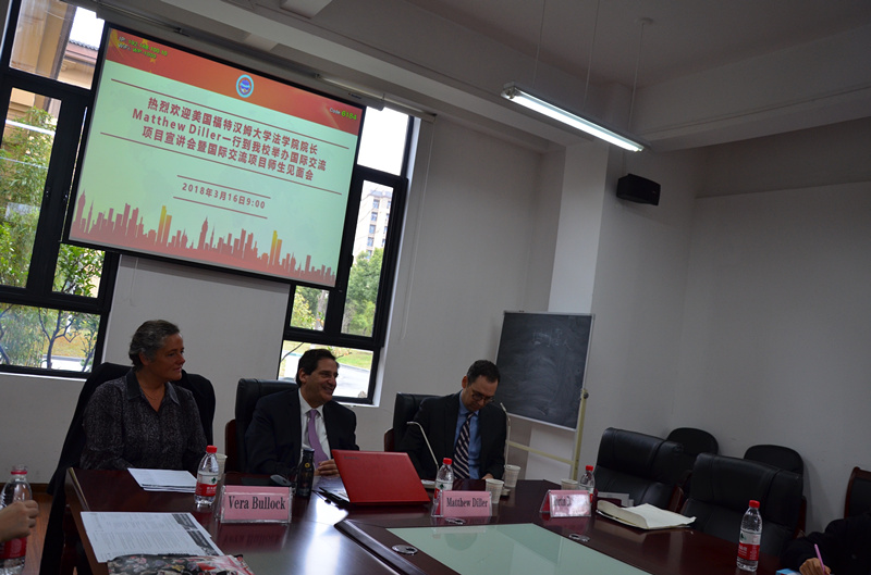 3月16日上午,美国福特汉姆大学法学院代表团一行到访我校,在法学楼B3-101会议室举行项目宣讲会。代表团成员有院长Matthew Diller(马修·迪勒)、副院长Vera Bullock(维拉·布洛克)和国际研究生项目负责人Martin D. Slavens(马丁·斯拉文斯)。