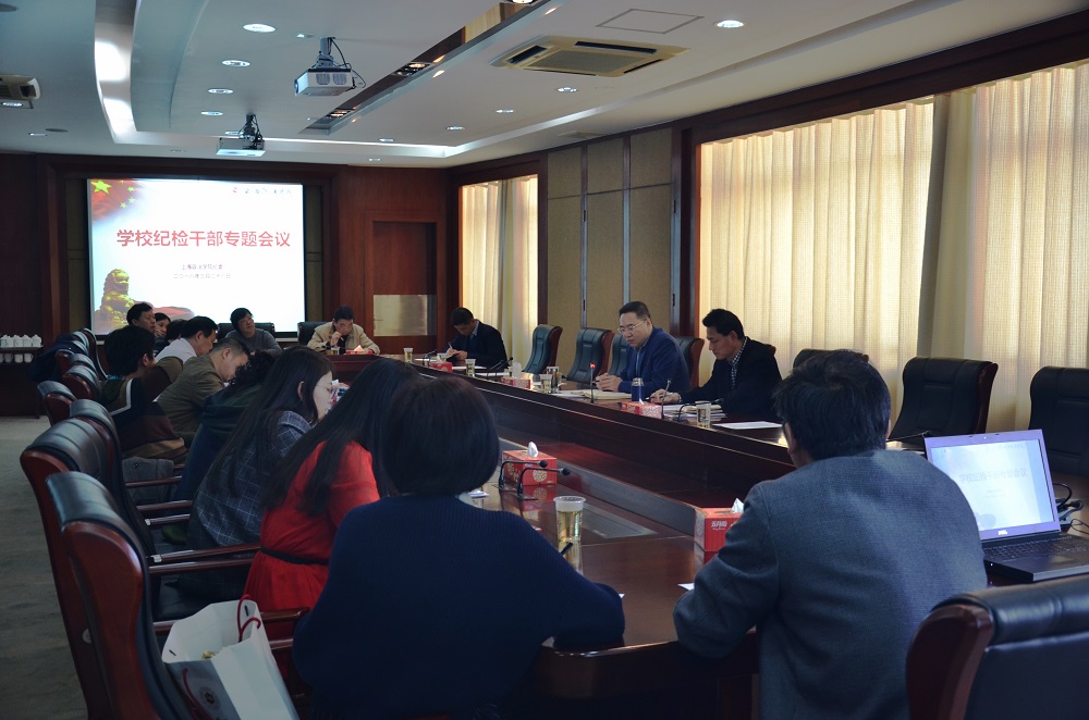 3月28日下午,学校纪委在求实楼413会议室组织召开纪检干部专题会议,会议由校党委副书记、纪委书记潘牧天主持,学校纪委委员、纪委监察室全体成员、各党总支纪检委员参加了会议。