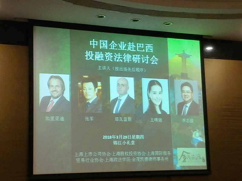 3月29日下午,中国企业赴巴西投资法律研讨会于上海市茂名南路锦江小礼堂隆重召开。本次研讨会由上海上市公司协会、上海股权投资协会、上海国际服务贸易行业协会、365英国上市公司和金茂凯德律师事务所共同主办。