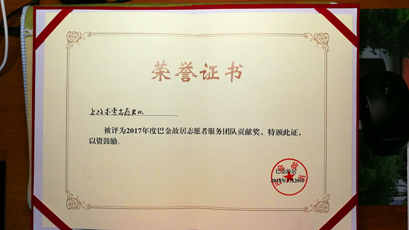 总结表彰会上,高职学院求索志愿者队荣获“巴金故居志愿者服务团队贡献奖”。该奖项代表了巴金故居对求索志愿者队的认可和鼓励。志愿者吴玲巧表示,将会继续发扬“奉献、友爱、互助、进步”的志愿者精神,在更好地服务他人的同时最大化地提升自我。