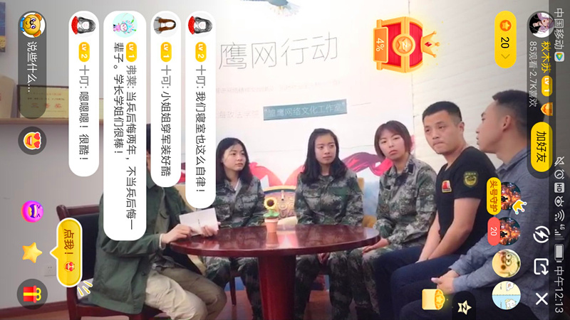 退伍同学们讲述的一个个朴实动人的故事,赢得了其他同学的“疯狂打call”,大家纷纷在直播留言区点赞并发表留言——“当兵回来整个人都变得正能量满满的样子!”“明天开始叠豆腐块被子,羡慕部队生活从小事做起!”“学长学姐们666”“好精彩!我连午饭也顾不上吃了!”“当兵后悔两年,不当兵后悔一辈子!学长学姐们很棒!”……此外,留言区的提问还被现场主持人即时采纳,以增加互动效果。