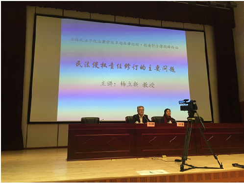 4月13日晚,法律学院“卓越法律论坛”邀请中国人民大学法学院杨立新教授来我校作“民法侵权责任修订的主要问题”专题讲座,法律学院院长侯怀霞教授出席并主持讲座。讲座现场座无虚席,活动氛围空前热烈,前来聆听讲座的学生不仅有来自校内的各个学院,还有来自上海市的部分兄弟院校。