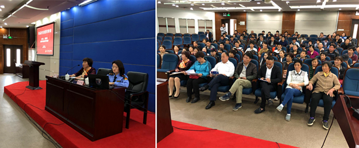 4月26日下午,后勤保障处在庸夫楼112召开了食品安全教育培训活动。本次培训邀请到青浦区赵巷市场监督管理所蔡宏郁进行培训。我校各食堂、超市负责人及员工共计160人参与了本次培训活动。