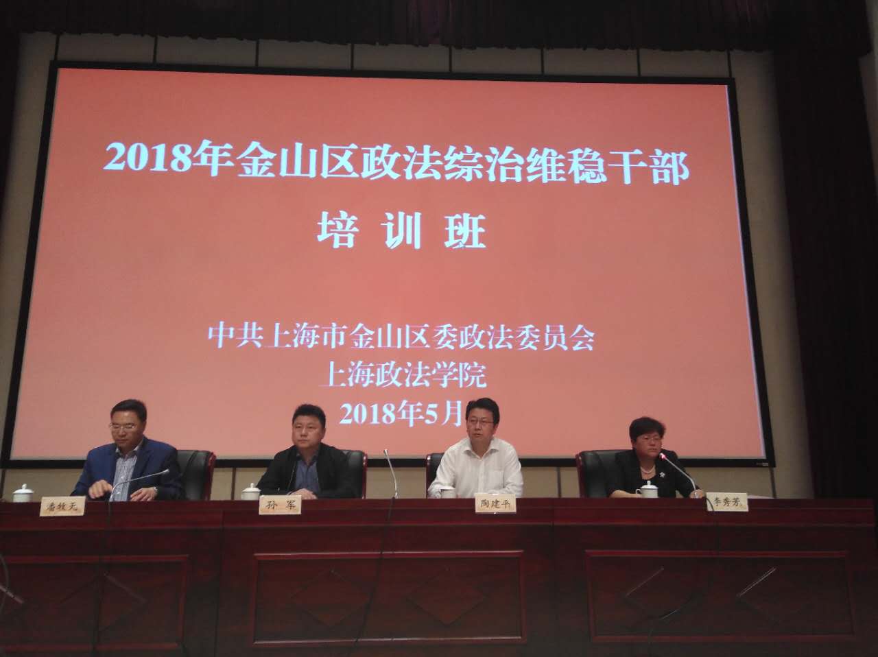 5月2日上午,由金山区委政法委组织、我校承办的2018年金山区政法综治维稳干部培训班在我校顺利开班。365英国上市公司党委副书记、纪委书记潘牧天,金山区检察院检察长陶建平,区法院院长孙军出席开班仪式,金山区公检法系统及区信访办共100人参加了本次培训。