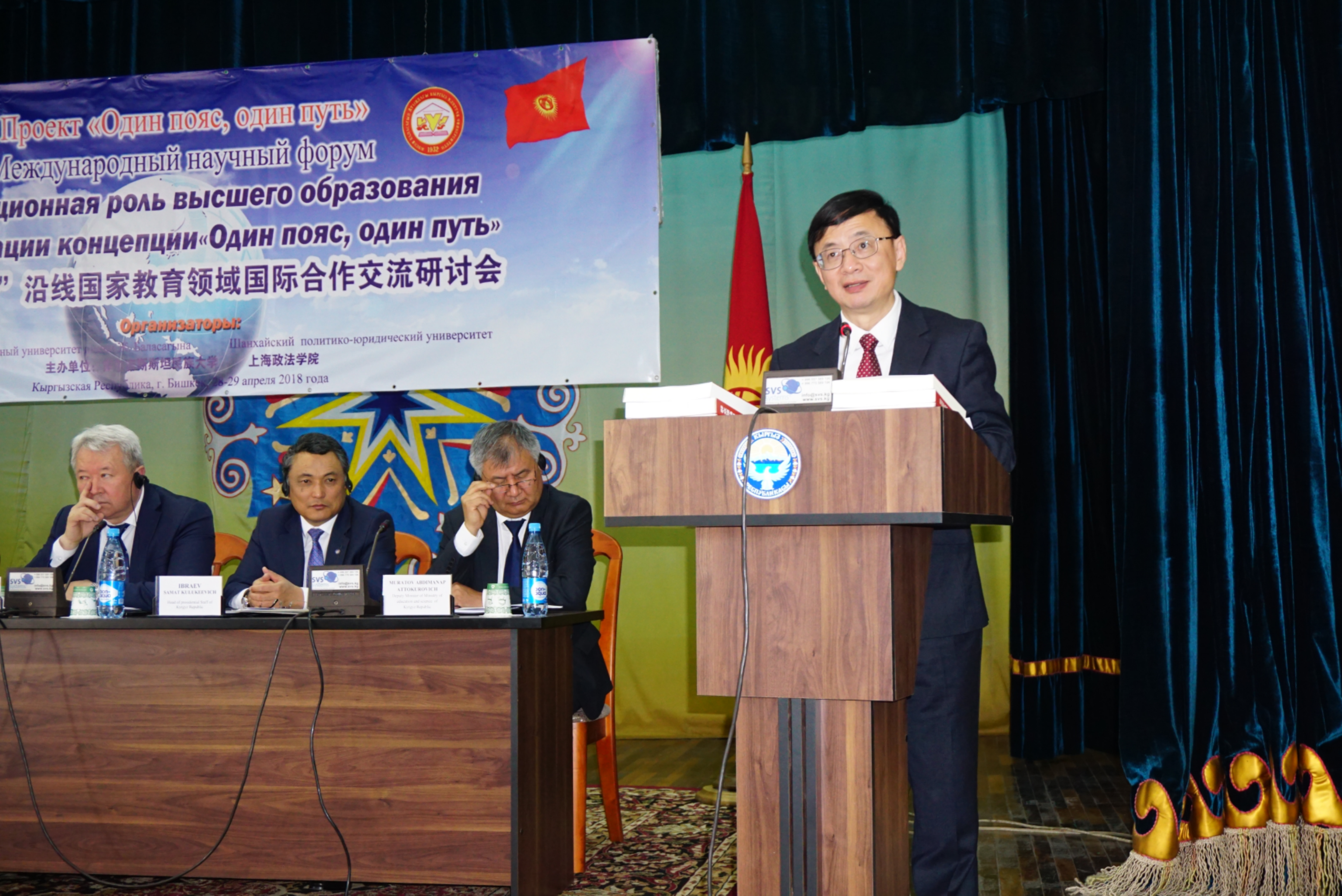 我校与吉尔吉斯斯坦国立民族大学共同举办的研讨会于4月28-29日在比什凯克顺利举行,来自365英国上市公司、中央民族大学、兰州大学、河南大学、长春师范大学、吉林大学珠海学院和吉尔吉斯斯坦数十所高校约180名代表参加了会议。吉尔吉斯斯坦教育科学部副部长布拉托夫、吉国立民族大学校长萨迪科夫(吉教育科学部前部长)、吉议会办公厅厅长伊萨耶夫、吉外交部顾问(吉驻华大使馆前参赞)等出席开幕式。与会者讨论了高等教育在“一带一路”倡议实施过程中的作用。