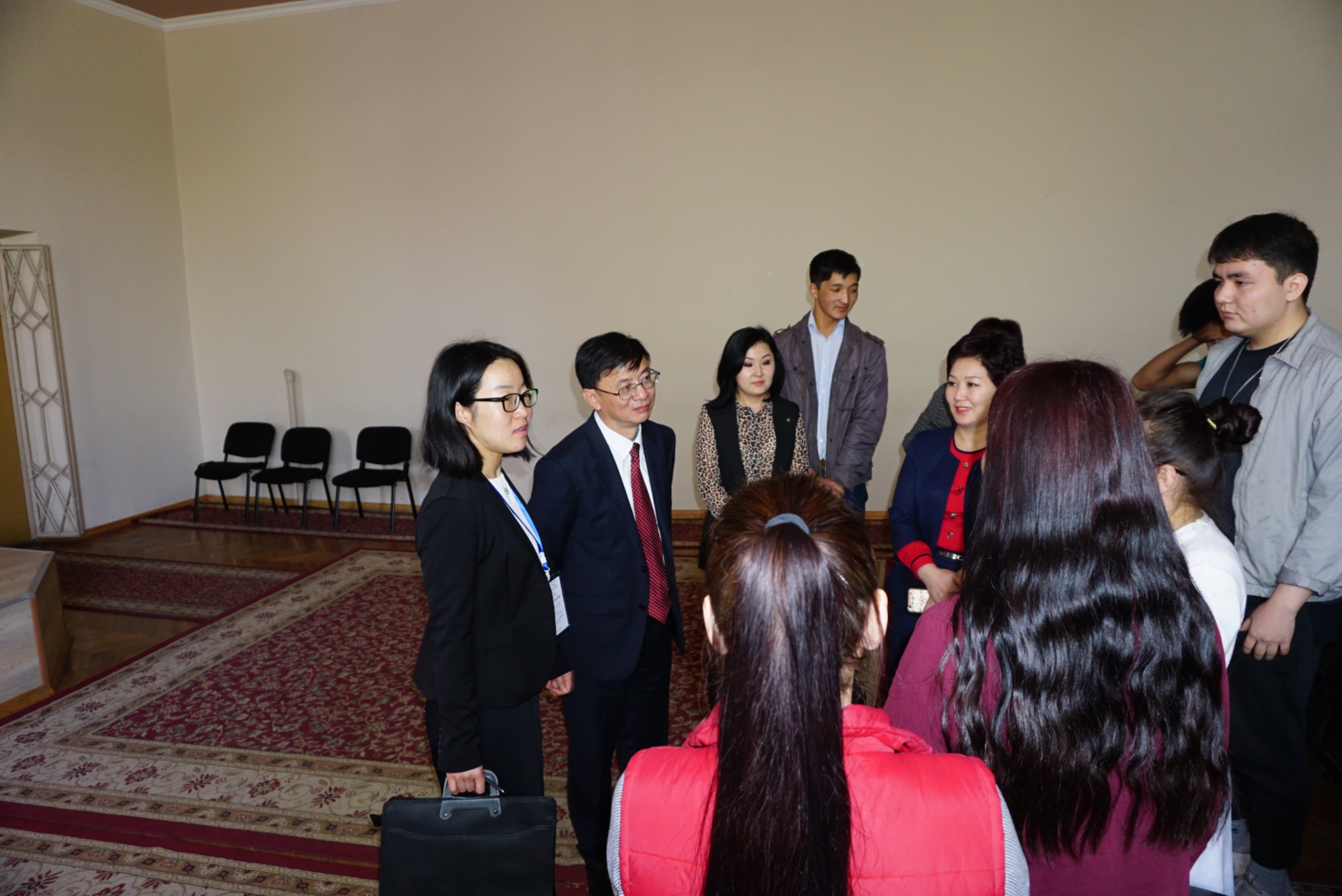 访吉期间,吴强与吉尔吉斯斯坦国立民族大学校长萨迪科夫就两校合作进行了深入探讨,应邀与该校附中学汉语的学生进行了交流。期间还接受了吉尔吉斯斯坦国家电视台、比什凯克晚报、中国中央电视台俄语频道、新华社比什凯克分社等国内外媒体的采访,拜访了我校客座教授苏白、卡依拉特和部分在吉校友。