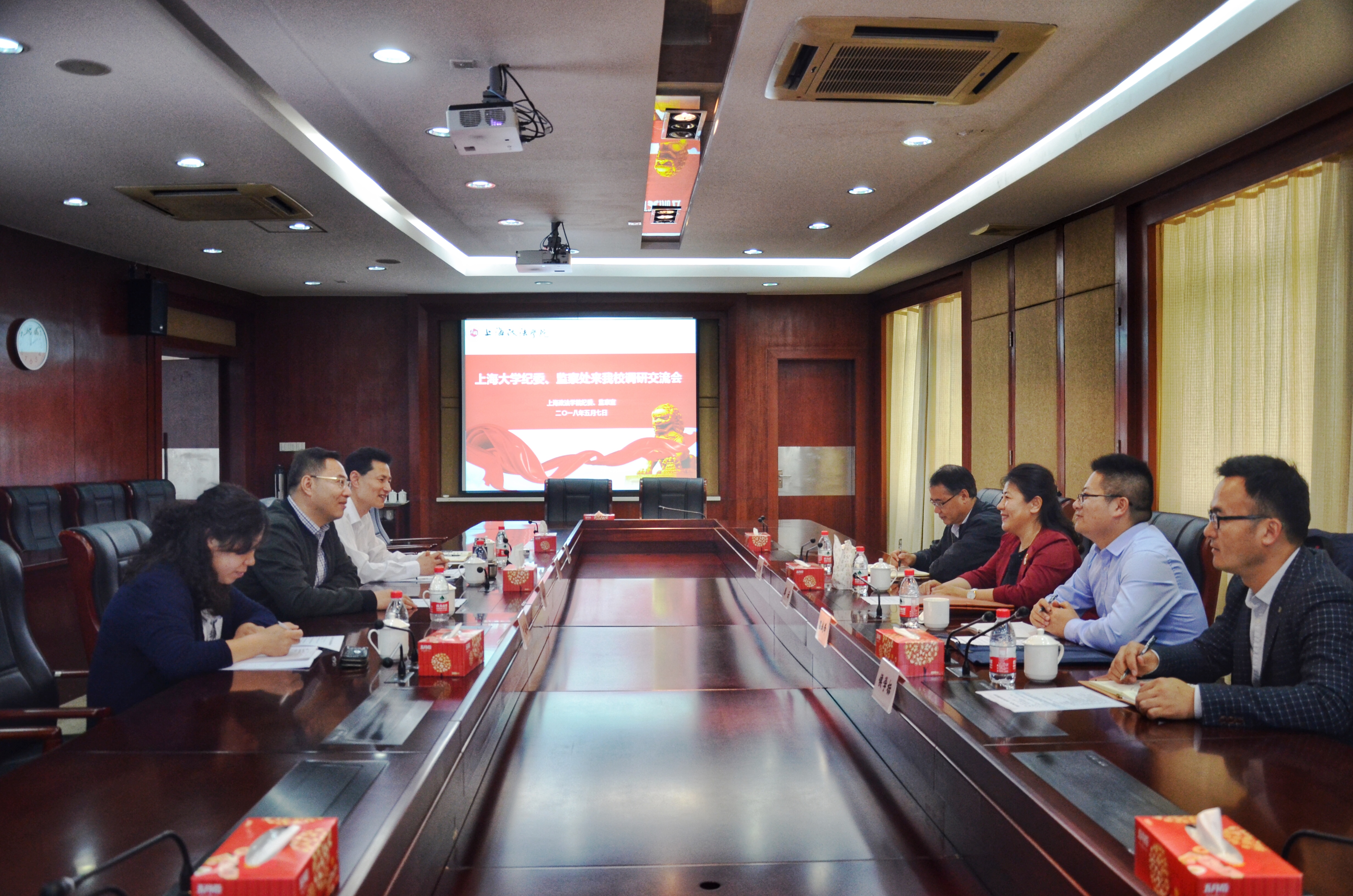 潘牧天对上海大学纪委监察同仁的到来表示热烈欢迎,并介绍了学校概况及学校纪检监察工作的基本情况,期望今后两校能大力加强联系,有效开展更多的业务交流与合作。