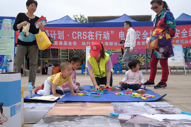 连年幼的小朋友也来参与了有趣好玩的体验活动,他们跟着志愿者边搭积木边做游戏、画画,来体验地震发生的原理和自救逃生的方法。