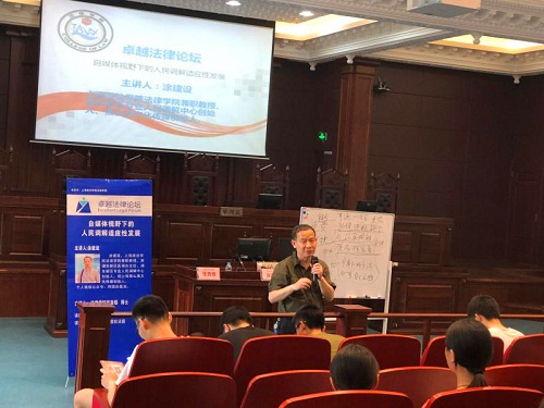 5月15日下午,法律学院在法学楼B4模拟法庭举办了以“自媒体视野下的人民调解适应性发展”为主题的卓越法律论坛,法律学院兼职教授、原浦东新区医调办主任、浦东新区专业人民调解中心创始人,现上海推么推文化传媒创始人涂建设主讲。学院张西恒博士出席并主持论坛,部分学生参加。
