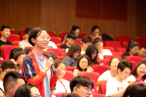 在她身上,那些沉甸甸的荣誉和辉煌,在清清浅浅的时光里不过是一个一个路向标,每个路向标都指向下一次的全力以赴。她用个人演讲的春风化雨和问答互动的温情展示,演绎着新时代中国青年的奋斗英姿与拼搏风采。为时一个半小时的讲座温馨、流畅,不时引来同学们的阵阵掌声,气氛热烈。