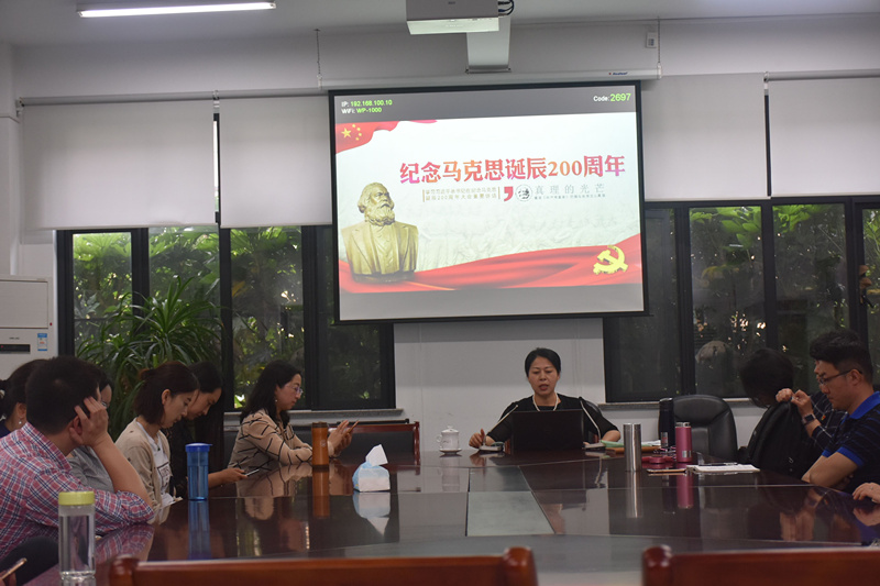 5月22日中午,外国语学院党总支开展纪念马克思诞辰200周年学习活动,由总支书记姚善英为全体党员讲党课。