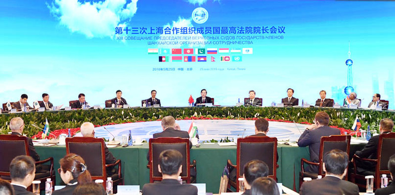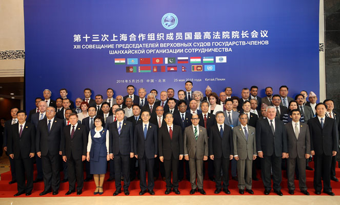 中华人民共和国主席习近平对本次会议的召开表示祝贺,中共中央政治局委员、中央政法委书记郭声琨宣读了习近平主席的贺信,并作开幕式致辞。最高人民法院院长周强,以及印度、哈萨克斯坦、吉尔吉斯斯坦、巴基斯坦、俄罗斯、塔吉克斯坦、乌兹别克斯坦的最高法院院长分别致辞。