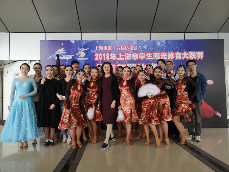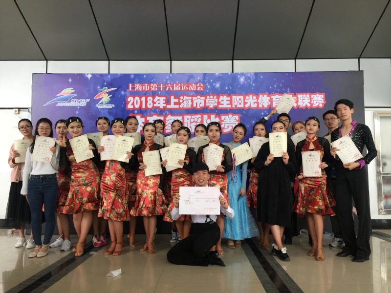 5月26日,我校国标队在领队吴嘉玲、教练许莉老师的带领下参加在东华大学举行的由上海市教委、上海市体育局、团市委主办的2018年上海市学生阳光体育大联赛体育舞蹈比赛。