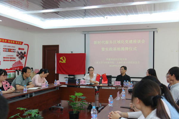 为迎接学校第一次党代会的召开,6月5日下午,文学与传媒学院、上海纪录片学院新时代服务区域党建实践主题党日活动暨文学与传媒学院、上海纪录片学院区域党建实践基地揭牌仪式在松江区翠鑫苑社区举行。翠鑫苑居民区党支部书记陆琼、副书记王琼、支部委员潘晓明,文学与传媒学院、上海纪录片学院党总支书记郭斌、学院党总支副书记周欣、学院党总支组织员王婉妮、学生党建督导员李洋以及学生党员代表参加会议。会议由陆琼主持。