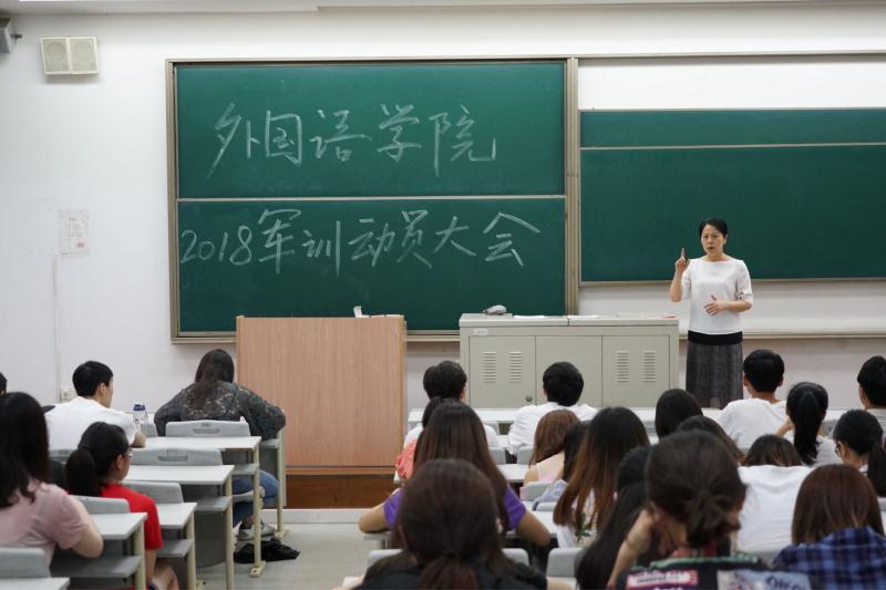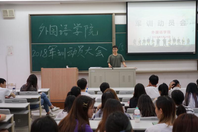 6月20日下午,外语学院于信息楼107召开了军训动员大会,学院党总支书记姚善英,辅导员、带训教官以及导生出席大会,全体大一学生参加了此次活动。