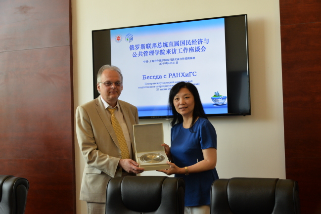 6月21日上午,校长刘晓红、校党委副书记吴强会见了俄罗斯联邦总统直属国民经济与公共管理学院代表团一行,并在上合培训基地综合楼举行了工作会谈。