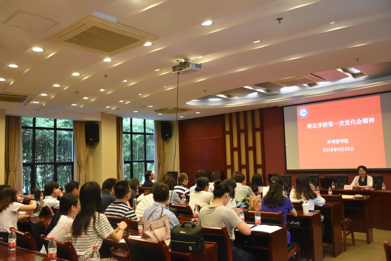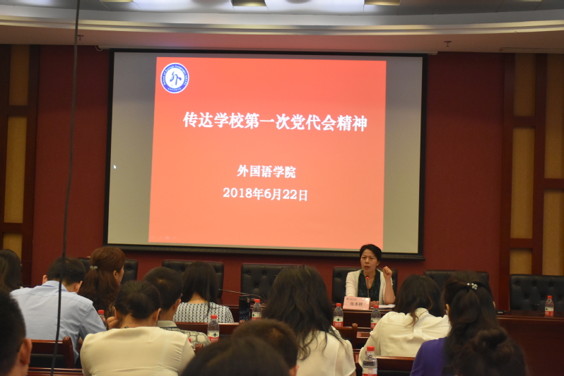 为深入学习贯彻学校第一次党代会精神,把全院党员干部和广大师生的思想统一到大会精神上来,把力量凝聚到大会确定的任务上来,外国语学院党总支精心组织,将个人自学与集体学习、线上学习与线下学习相结合,多种形式深入宣传贯彻党代会精神。6月22日上午,外国语学院在综合研究中心107会议室召开全体教职工大会,集体学习了学校第一次党代会精神。会议由党总支书记姚善英主持,全体教师及部分学生参加会议。
