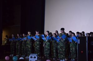 三个学院联合制作的军训视频的播放,揭开了晚会的序幕。紧接着的舞蹈串烧点燃现场气氛,将晚会迅速推上小高潮。而之后各种节目轮番登场,无一不异彩纷呈,魅力四射。由国际法学院带来的诗朗诵节目《中国少年说》展示了当代青年学生的责任感和使命感。歌唱、舞蹈、小品等节目穿插进行,一次又一次地调动起全场观众的热情,使全场气氛热烈又活跃。晚会进行到一半时,主持人邀请各排教官发表寄语,晚会又一次被推向高潮。最后,一曲《燃烧吧少年》为本次晚会画上圆满的句号。(黄静如撰稿、摄影)