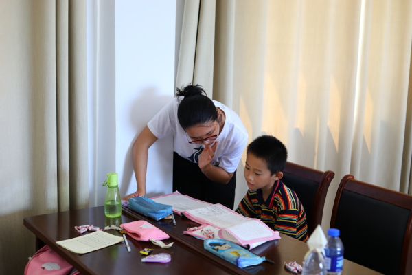实践队员们按照学生年级,将三十多名学生划分为与他们英语水平相对应的层次,每个志愿者都有专门负责的教学内容和教学对象,进行一对一辅导。