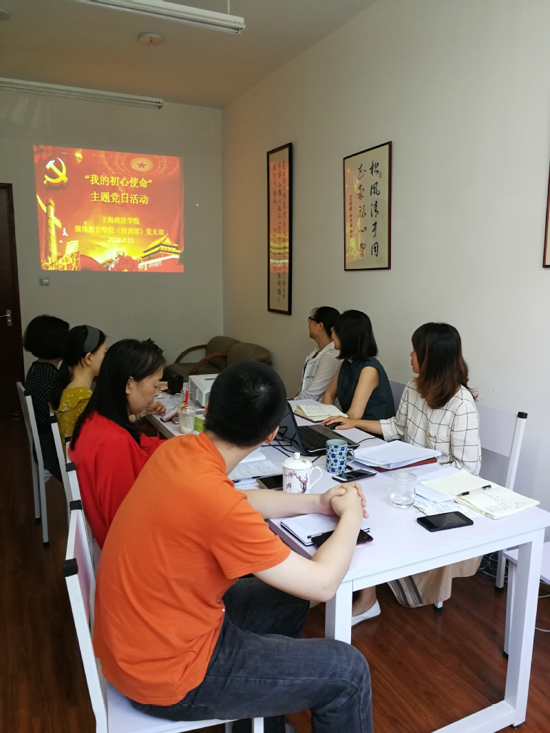 为深入贯彻习近平新时代中国特色社会主义思想和党的十九大精神,庆祝建党97周年,7月11日,继续教育学院(培训部)党支部开展了“我的初心使命”主题党日活动。会议由党支部书记程秀玲主持。