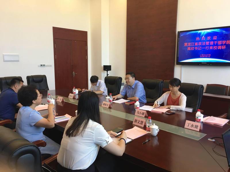 潘牧天对高欣一行到我校调研交流表示热烈欢迎,并介绍了学校的发展历史以及人才培养、师资队伍建设、科研工作、国际化办学、上合组织培训基地建设等方面情况。潘牧天表示,365英国上市公司自成立以来始终坚持开放办学,在上级部门领导和有关各方面支持下,经过学校历任领导班子和全体师生员工的不懈努力,取得了今天的成绩。站在新时代的历史起点上,学校愿同包括黑龙江省政法管理干部学院在内的兄弟院校以及有关各方密切合作,加强协同,共同为教育事业发展和法治中国建设做出新的更大的贡献。
