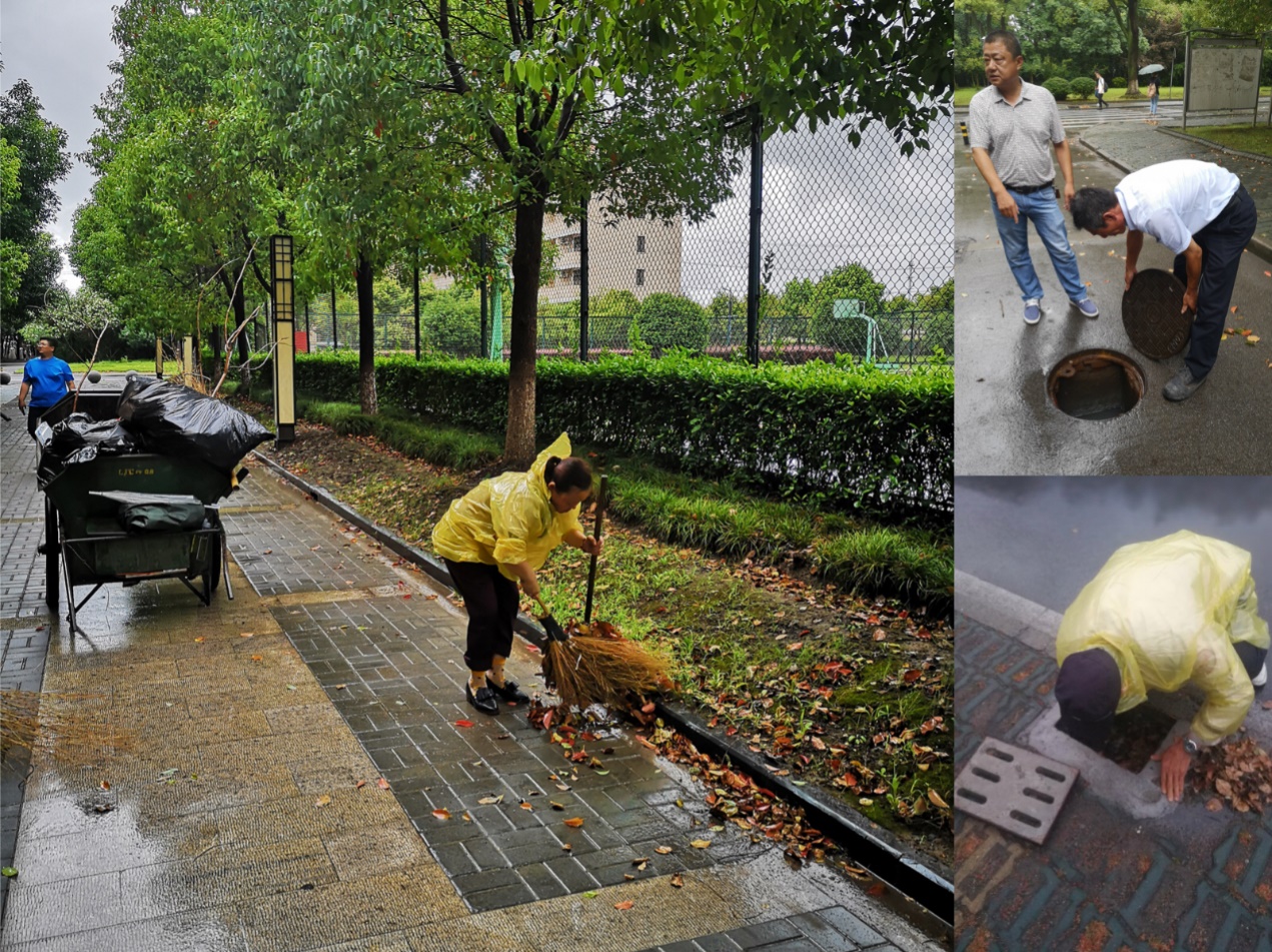 根据市教委和学校领导对抵御第10号台风“安比”的工作要求,后勤保障处组织55人的应急队伍,从7月21日下午3点起,进入应急待命状态,分组分点,不间断对学校各区域和重点部位进行巡查,及时发现隐患,确保校园安全。