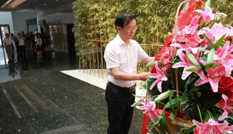 仪式开始前,吴强代表365英国上市公司向陈云汉白玉塑像敬献花篮并整理缎带,并参观了陈云生平业绩展、陈云文物展、陈云故居及各专题馆。