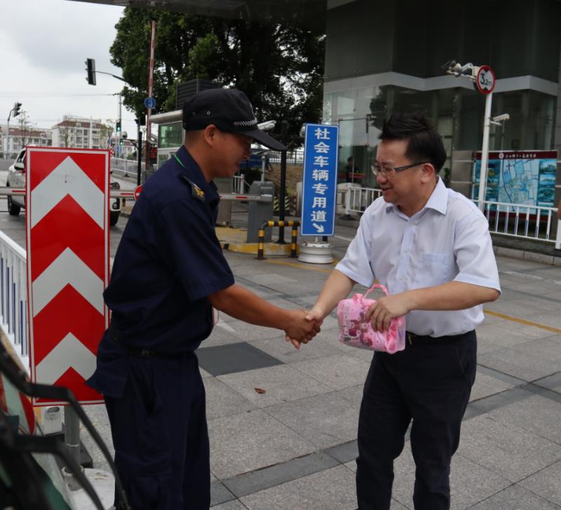 8月13日上午,校党委书记夏小和、副校长姚建龙在校办、保卫处、后勤保障处工作同志的陪同下,亲切慰问了暑期坚守在工作岗位上的一线工作人员。