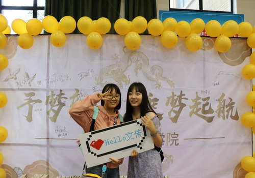 学院还举办了“我的职场展望”特色手牌留念活动。根据学院三个不同专业的职业发展方向,制作了印有“金牌记者”“一代名师”及“首席文案”等字样的特色手牌,新生在学院主题背景板下手持自己心仪的手牌拍照留念,并接受以“梦想”为主题的采访,在树立专业理想的同时记录自己追梦的起点。