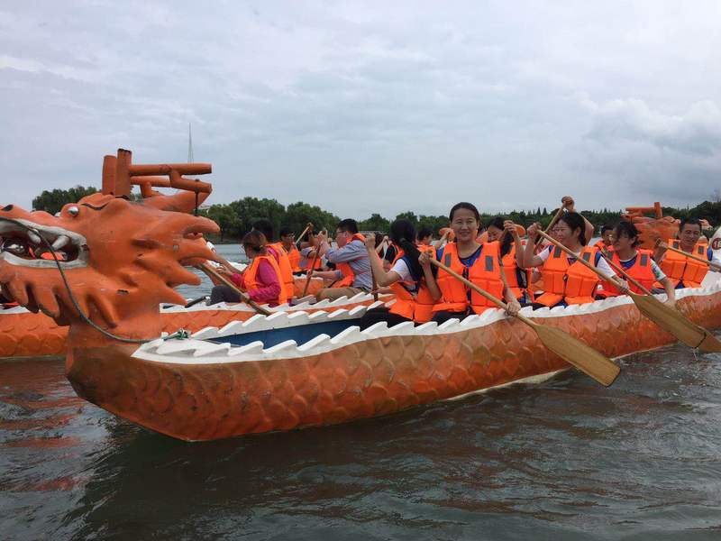 下午的“龙舟竞渡”项目中,随着一声哨响,各队龙舟奋力向终点进发。尽管缺乏水上项目经验,参训成员仍密切配合、齐心协力,不断在摸索中前进,努力将龙舟划向终点。微波荡漾的湖面上不时吹来阵阵凉爽秋风,队员们不禁合唱起“让我们荡起双桨”,歌声欢快悠扬,整个画面既动感十足,又不乏和谐温馨。经过重重比拼,最后,“超越队”以最高积分获得优胜。