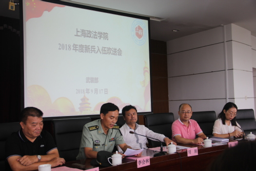 9月17日下午,我校2018年大学生新兵入伍欢送会在求实楼513会议室举行。校党委副书记、副校长刘刚,青浦区人武部部长李会林,学生工作部部长、人民武装部部长张军,保卫处处长郭玉生,保卫处副处长、武装部副部长马洪亮,青浦区人武部军事科科长孙武及各二级学院学工负责人、辅导员,2017年全体入伍大学生及学生家长参加。会议由学生工作部副部长、人民武装部副部长徐丽红主持。