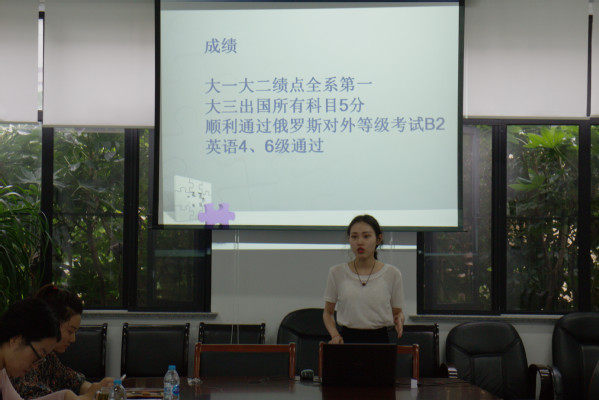 9月17日,外国语学院2017-2018学年国家奖学金、上海市奖学金评审答辩会于A1-101举办。学院教学副院长夏甘霖,俄语专业教师张晓玲,辅导员赵倩莹、伍强瑞,各年级学生代表担任本次答辩会评委,来自各专业各年级的9位奖学金申请候选人参加答辩。