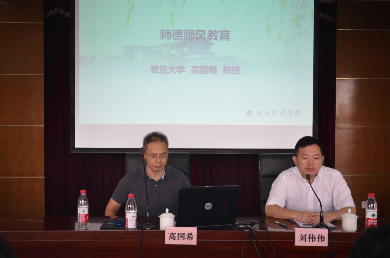 此次培训邀请了复旦大学马克思主义学院高国希教授就“立德树人与师德”作专题讲座。高国希强调教书育人不是“教书”结合“育人”,而是为“育人”而教书,把立德树人融入到课程、大学管理等各项工作中,是每一位教师的职责与使命。高国希从道德情操、理想信念、扎实学识、仁爱之心等四个方面具体阐述“四有好老师”标准的含义。他指出,教师“传道授业”,是要将政治认同、国家意识、社会主义核心价值、宪法和法律以及真理传输给学生,以身作则、言传身教,通过课程教学培育学生理性的、合乎逻辑的思维品质,在行为上作出对自己、他人、社会乃至国家有情感、负责任的选择。高国希还肯定了师德师风专题培训的意义,他指出,跟前辈、教授的交流是教师成长的必经之路,希望各位老师在工作岗位上感受到教师职业的光荣,有所收获。